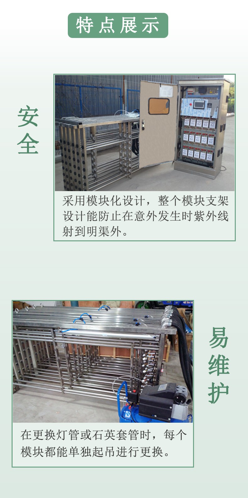 上一條:污水處理廠明渠式紫外線殺菌模塊進(jìn)口飛利浦燈管支持定制304/316不銹鋼框架
